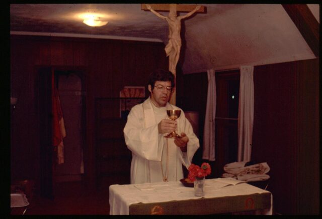Msgr. Lammers as the Newman chaplain in Rolla serving a Wednesday evening mass at the Newman Center.